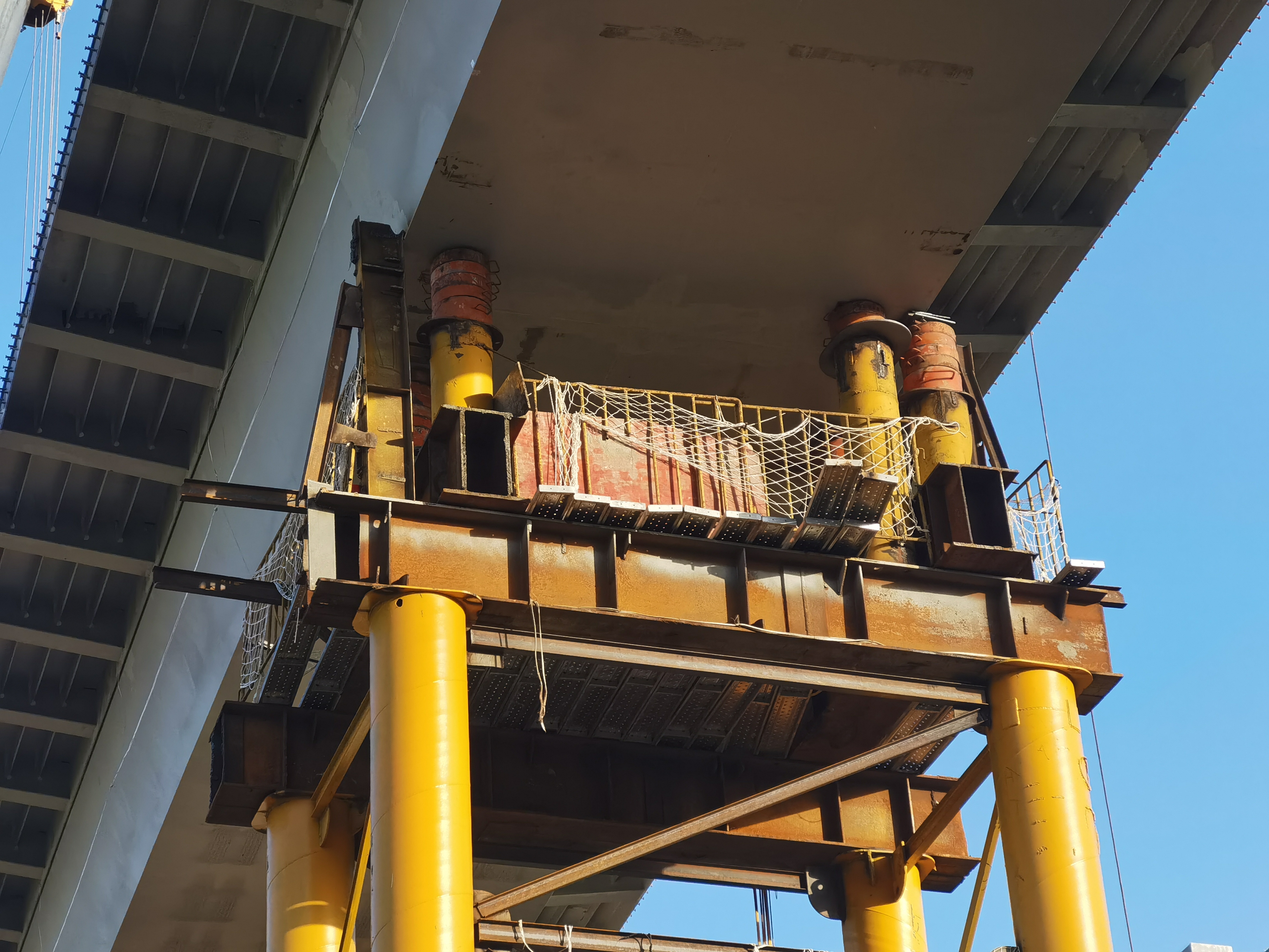 上跨既有線大縱坡曲線段鋼箱梁智能頂推施工技術(shù),研發(fā)采用滑動步進式智能頂推施工,研制了鋼箱梁頂推千斤頂側(cè)向就位滑道,并提出了鋼箱梁預(yù)制混凝土護欄組合頂推施工技術(shù),保障了頂推鋼箱梁的精準就位及施工安全,全面提升了施工效率,確保節(jié)點工期目標順利實現(xiàn)。