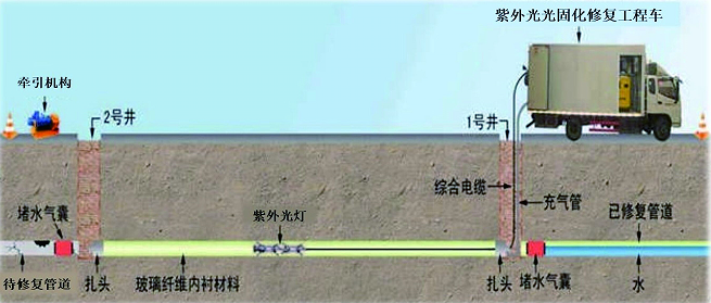 紫外光固化管道修復(fù)技術(shù)為城市雨污水管網(wǎng)改造帶來全新方案探索。將特制軟管材料浸漬光固化樹脂后拉入舊管道,在紫外光照射下迅速固化形成高強度內(nèi)襯管,無需開挖路面,極大減少施工擾民與環(huán)境破壞。在新站區(qū)排水管網(wǎng)排查整治完善工程一期-1標順利實現(xiàn)了安徽省內(nèi)最大管徑管道紫外光固化修復(fù)。