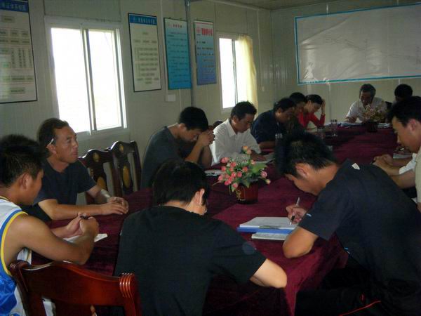 會上,杜經(jīng)理首先傳達了公司《關(guān)于作好國慶、中秋期間安全生產(chǎn)工作的通知》,接著回顧了最近幾次安全生產(chǎn)檢查情況,重點整頓了臨時用電、基坑圍護、機械設(shè)備持證上崗及高空作業(yè)幾個方面。