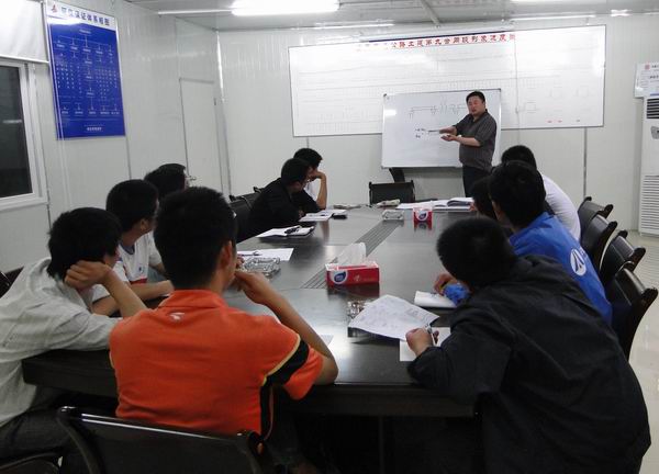 為了提高廣大技術(shù)員的綜合素質(zhì)和技術(shù)能力,加強內(nèi)部交流和溝通,同時為了更好的貫徹執(zhí)行項目2010年內(nèi)訓(xùn)工作計劃,5月23日晚,橋梁技術(shù)質(zhì)量內(nèi)訓(xùn)課程在宜巴高速09標(biāo)如期舉行,項目總工吳昊擔(dān)任課程主講人。