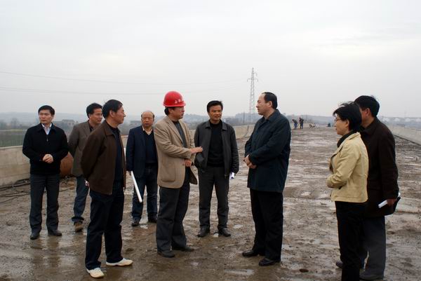 3月19日、21日上午,蕪湖市政府副市長朱誠、人大副主任楊世群分別冒雨來我公司承建的蕪湖縣三荻路青弋江大橋視察、指導工作。