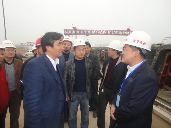 42上午,省交通基本工程質(zhì)量監(jiān)督站站長(zhǎng)何光、安全科長(zhǎng)馬賢貴一行蒞臨我宣寧02標(biāo),對(duì)我部施工進(jìn)行了現(xiàn)場(chǎng)視察和指導(dǎo)。宣寧高速公路項(xiàng)目辦副主任董磊、總監(jiān)理辦公室總監(jiān)石程華、第一監(jiān)理組組長(zhǎng)林秀川和我部項(xiàng)目經(jīng)理張慶書(shū)等陪同視察。