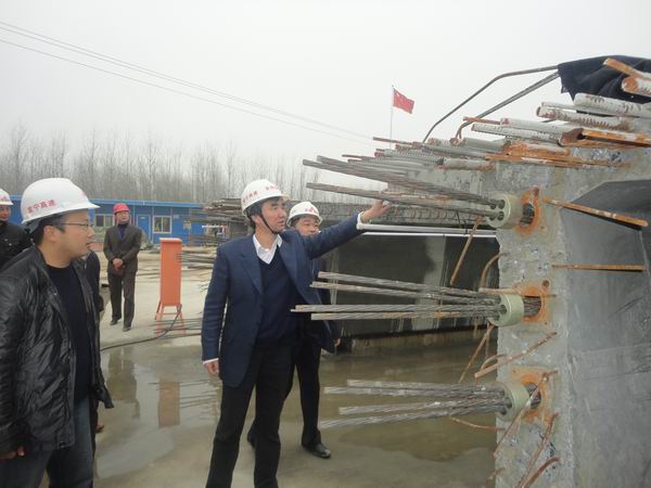 視察過(guò)程中,何站長(zhǎng)對(duì)我部預(yù)制梁場(chǎng)的施工質(zhì)量、工藝給予了充分的肯定和贊揚(yáng),通過(guò)察看安全警示牌、詢(xún)問(wèn)現(xiàn)場(chǎng)安全員,對(duì)我部安全工作的全面細(xì)致也豎起了大拇指,并對(duì)我安徽省公路橋梁工程公司表達(dá)了由衷的贊許。在肯定我們的工作成績(jī)的同時(shí),何站長(zhǎng)也要求我們要繼承和發(fā)揚(yáng)安徽省路橋公司的優(yōu)良傳統(tǒng),細(xì)化工作、進(jìn)一步提高工程質(zhì)量。