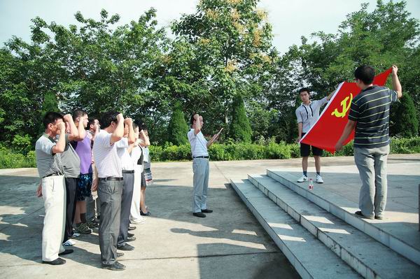 下午,大家興致勃勃的前往獨(dú)山革命舊址群參觀瞻仰。獨(dú)山是革命老區(qū),它為中國革命和民族解放事業(yè)作出了巨大貢獻(xiàn),同時也付出極大的犧牲。我們?nèi)w黨員在汪書記的帶領(lǐng)下,在莊嚴(yán)的紀(jì)念塔下,重溫入黨宣誓誓詞。