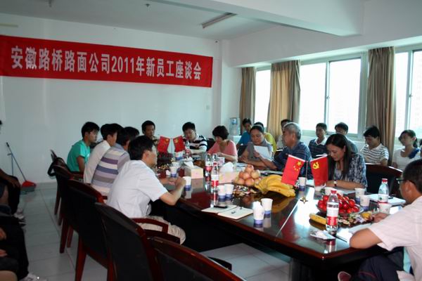為進(jìn)一步了解新員工的思想動態(tài),促進(jìn)員工之間、員工與領(lǐng)導(dǎo)之間的溝通和交流,使新進(jìn)員工盡快融入到安徽路橋路面公司這個大家庭中來,7月6日上午,安徽路橋路面公司2011屆新員工座談會在路面公司六樓會議室舉行。公司黨支部書記王年保、總經(jīng)濟(jì)師袁青嶺、工會副主席姚光群、租賃公司經(jīng)理蔡傳勇以及周六路項目經(jīng)理王小杰、蚌淮路項目副經(jīng)理姚琪等領(lǐng)導(dǎo)及新進(jìn)員工40余人參加了座談會。會議由人力資源部經(jīng)理錢紅梅主持。
