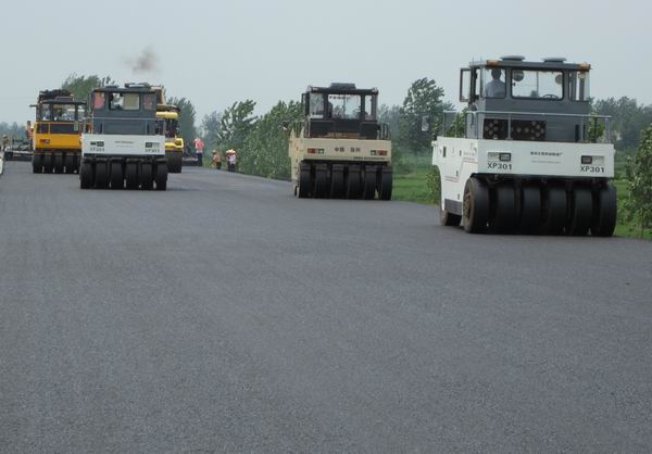 周六路面03標(biāo)下面層試驗段順利攤鋪