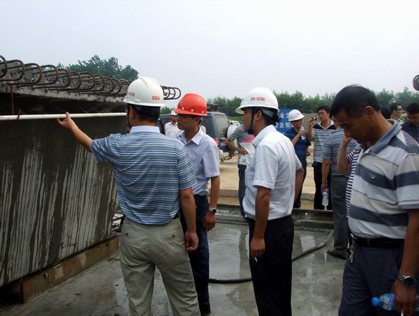 在箱梁場(chǎng)大家詳細(xì)討論了箱梁噴淋養(yǎng)生工藝的細(xì)節(jié)和優(yōu)化方案,對(duì)箱梁預(yù)制端頭質(zhì)量控制等各個(gè)細(xì)節(jié)進(jìn)行了充分的交流,也提出了寶貴的意見。最后,大家就箱梁場(chǎng)地布設(shè)、臨時(shí)用地等各項(xiàng)建設(shè)問(wèn)題進(jìn)行了探討。