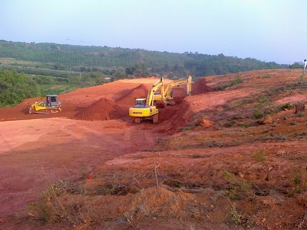 我部施工標(biāo)段全長28公里,項(xiàng)目部將在永豐和吉水兩縣分別設(shè)立一座水穩(wěn)拌合站及一座瀝青拌和站。按照業(yè)主要求,8月份完成水穩(wěn)拌合站架設(shè),10月份完成瀝青拌合站架設(shè)。項(xiàng)目部已經(jīng)定出倒排工期計(jì)劃表。目前在永豐縣的“一白一黑”兩站已經(jīng)確定,水穩(wěn)拌和站已具備架設(shè)及備料條件。吉水縣我標(biāo)段所處位置多為山地,且大部分為公益林,經(jīng)過慎重選擇后,選定了一塊約50畝的山林地作為兩站場地。但此處土方量較大,場地整平土方量經(jīng)測算約8萬方。項(xiàng)目部將充分利用晴好天氣,加班加點(diǎn),計(jì)劃10個(gè)工作日完成場地整平。
