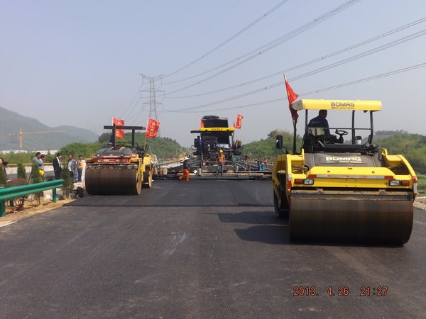 為保證此次試驗(yàn)段攤鋪順利進(jìn)行,項(xiàng)目部于4月25日晚召開專項(xiàng)會(huì)議,對(duì)各施工班組及機(jī)械操作人員進(jìn)行詳細(xì)的技術(shù)、安全交底,對(duì)整個(gè)施工過程的各個(gè)環(huán)節(jié)進(jìn)行了詳細(xì)確認(rèn),將責(zé)任、要求細(xì)化到個(gè)人。會(huì)議強(qiáng)調(diào)在施工過程中要嚴(yán)把質(zhì)量關(guān),瀝青出場溫度、到場溫度、攤鋪溫度、初壓溫度、復(fù)壓溫度、終壓溫度等相關(guān)指數(shù)均要在設(shè)計(jì)范圍內(nèi),同時(shí),安全保障措施等也要控制到位。